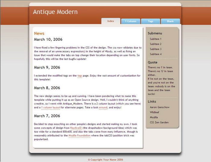 Ancient and modern BLOG page template