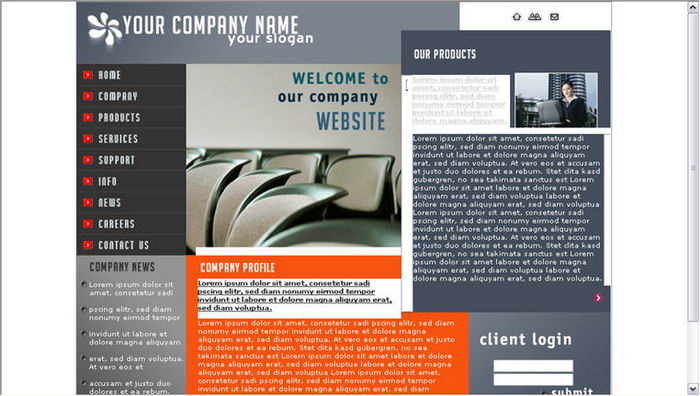 Commercial company's Web site page template template