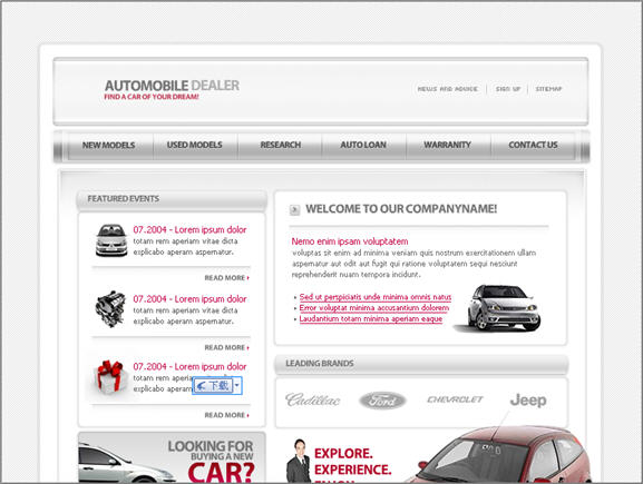 Business the company's Web site interface
