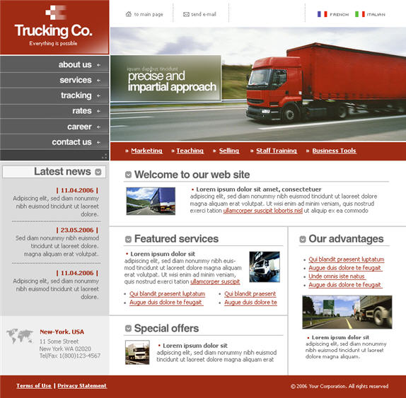 Large trucks the company's Web site interface